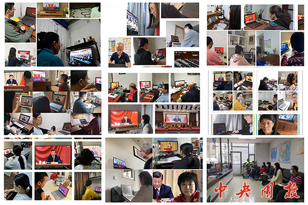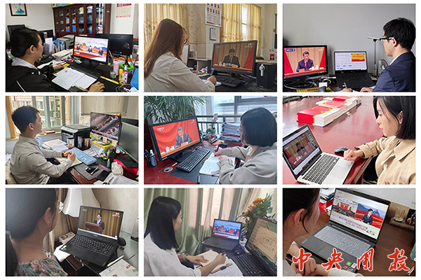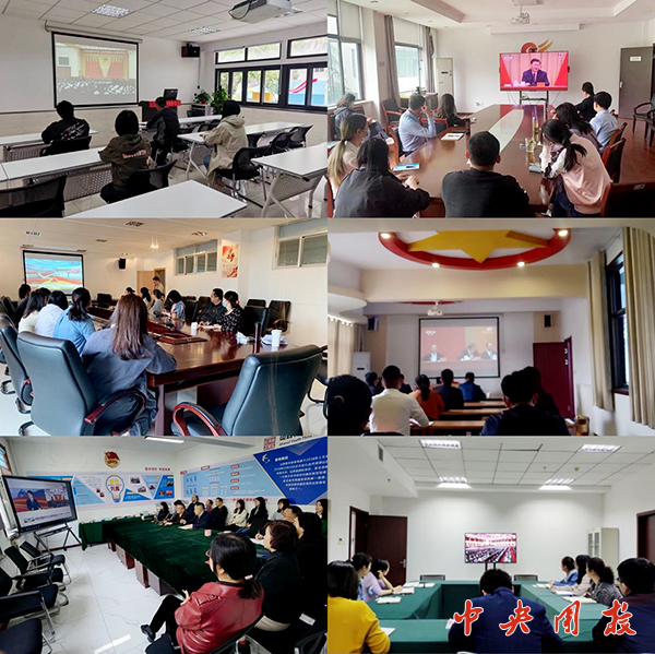 各党总支、(直属)党支部组织本支部党员,通过团中央新媒体、中央广播电视总台、新华网、人民网等平台收听收看庆祝大会直播。