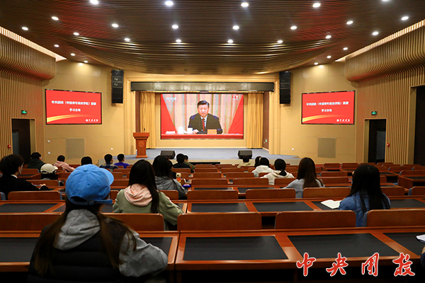 学校团委组织在校的团委委员和研究生在大阶梯教室集中收听收看大会直播。