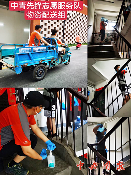 新闻中心讯(朱丰卓) 5月29日,一张志愿者为小区高龄老人和行动不便人员运送物资的照片,在“中青院社区居民”微信群获得一片点赞。照片中扛着桶装水跑上跑下的年轻人,是中青先锋志愿服务队物资配送组的成员。