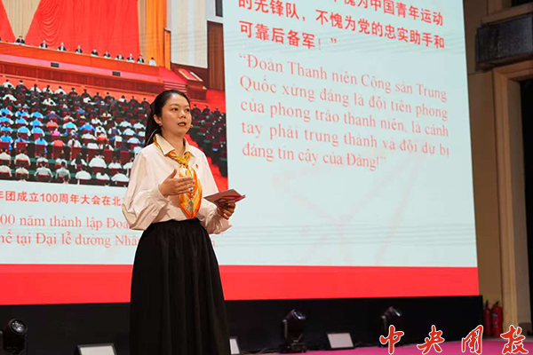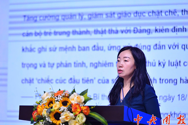 在越南青少年学院举办的“以提高团组织活力,提升大局贡献度”座谈会上,周小舟以《培养清澈纯粹、堪当大任的中国共青团干部》为主题,就“中国培养团干部和提高团干部队伍质量的工作举措”进行了发言。