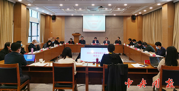新闻中心讯 4月20日,世界杯官网召开2022年度教学科研工作座谈会。校党委副书记、常务副校长陆玉林,校党委常委、副校长林江出席会议并讲话。教务部、科研与智库工作部、研究生部及各教研部负责同志、学校课程建设专委会成员参加了会议。