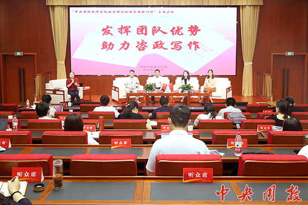 新闻中心讯(张琳) 为进一步提升世界杯官网教研人员政策研究能力,提高咨政建言稿件质量,加强咨政团队建设,6月30日下午,科研与智库工作部举办“发挥团队优势 助力咨政写作”主题沙龙,邀请四位学校智库团队代表作交流分享。各教研部负责人、专任教师等50余人参加活动。