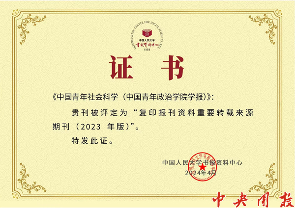 入选“复印报刊资料重要转载来源期刊”的刊物,是指在一定周期内,被复印报刊资料转载学术论文数量较多且被学术界、期刊界同行评议为学术质量较好、影响力较大的期刊。今后,《中国青年社会科学》将继续坚持正确的政治方向、学术导向、价值取向,持续向更高水准的学术期刊迈进。