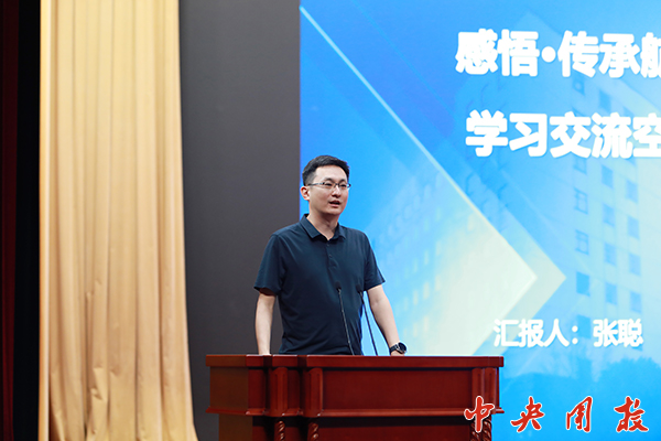 主旨演讲环节,张聪生动讲述了航天传统精神、“两弹一星”精神、载人航天精神、新时代北斗精神等航天精神谱系,表示航天人的奋斗和成就“彰显了中华民族自强不息的伟大精神”,强调不管条件如何变化,自力更生、艰苦奋斗的志气不能丢。随后,他从奋斗历程、主营业务、突出贡献、人才队伍、荣誉奖励等方面介绍了502所情况,“我们所工作人员的平均年龄38岁,我所在的团队就是一支政治坚定、开拓创新、技术扎实、团结协作的青年队伍。”张聪的介绍让大家了解到502所为“两弹一星”、载人航天、探月探火、北斗导航等国家重大宇航工程任务的圆满完成做出了突出贡献,取得了我国航天史上的多个“第一”,在载人飞船精确返回着陆、嫦娥五号月面自主起飞、火星自主着陆、快速交会对接等技术上处于国际领先水平。他表示,希望通过交流,让大家更加关注和关心中国航天事业,激发青年人钻研前沿技术的热情,为中华民族伟大复兴贡献力量。