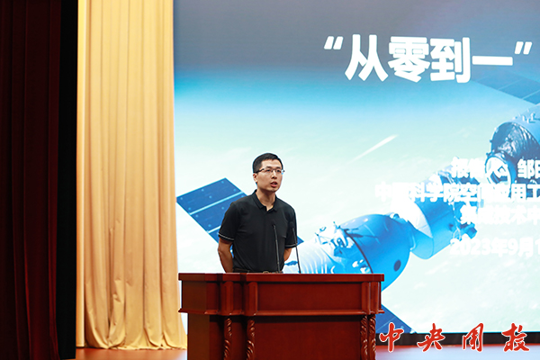 邹田骥从大家感兴趣的中国载人空间站工程入手,介绍了他所在的研究团队参与的中国空间站科学实验柜建造工作,讲述了团队如何突破技术壁垒、攻克技术难关,“10年间,我们从零开始,把建造空间站这条路走通了!面对历史赋予的科技创新重任,研究团队将继续秉承载人航天精神和科学家精神,心无旁骛、力戒浮躁,坐得了冷板凳,肯下‘十年磨一剑’的苦功夫,践行新一代航天人积极进取、淡泊名利的时代精神,让无悔的青春在汗水中闪闪发光,在实现空间科技强国梦的征途上贡献中国智慧、中国方案、中国力量。”