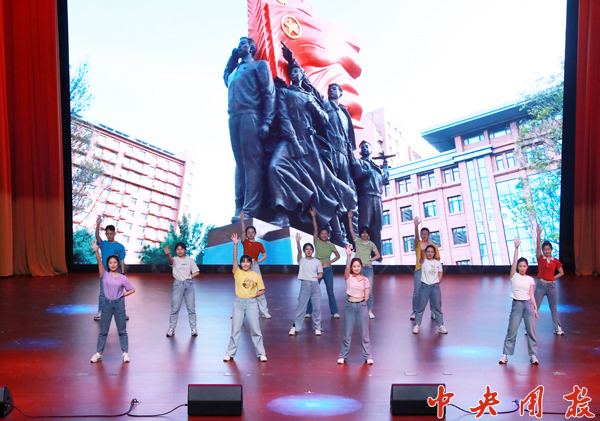 “我们是五月的花海,用青春拥抱时代;我们是初升的太阳,用生命点燃未来。”一段气势磅礴的先导片后,演出在学员合唱的《光荣啊!中国共青团》中正式拉开帷幕。