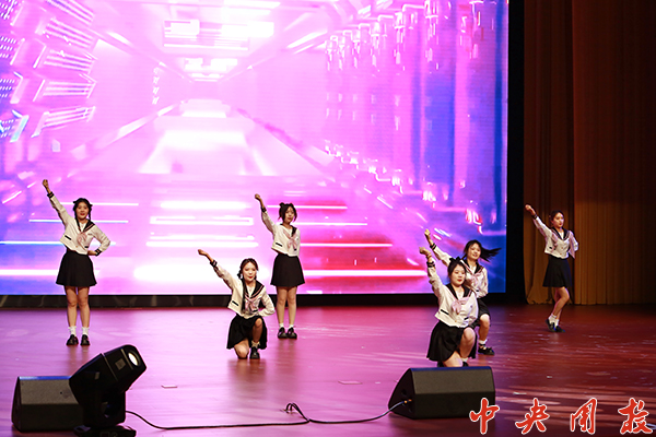 研究生们的表演唱《NEW YOUTH》、相声《两点钟开始》,体现了青年学子的青春活力。