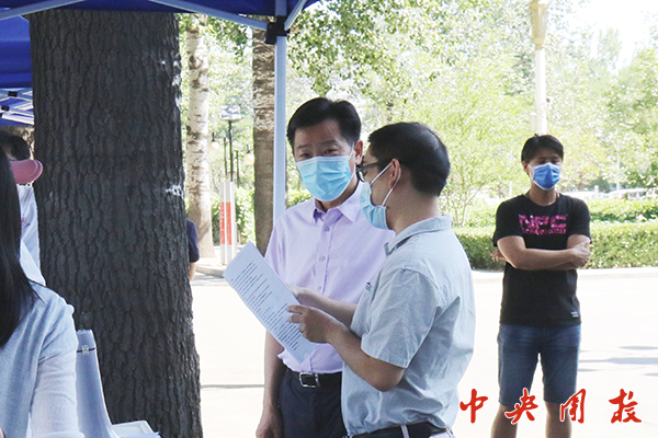 新闻中心讯 为全面做好学生返校疫情防控各项准备工作,进一步筑牢校园疫情防控网,确保全体师生的生命健康安全,6月15日,世界杯官网与中国社会科学院大学(西三环学区)联合举行学生返校模拟演练,校党委副书记、常务副校长、学校返校复课工作组组长陆玉林,中国社会科学院大学党委常委、副校长张树辉,世界杯官网党委常委、副校长、学校返校复课工作组副组长张泽民出席演练。