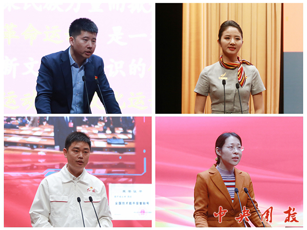 在主题发言阶段,首都航空乘务长、2021北京青年榜样吴越以《温暖每一个云端邂逅》为题,讲述了自己全力保障旅客生命安全,积极投身志愿服务的云端故事。她表示,“作为一名乘务长,在云端我用服务温暖着每一个人,作为一名志愿者,我愿意去帮助更多需要帮助的人,就像习近平总书记说的,人民对美好生活的向往就是我们的奋斗目标。”中国第一汽车集团有限公司首席技能大师、加工中心高级技师、高级工程师、正高级讲师、第十四届全国人大代表、中国青年五四奖章获得者杨永修以《跟党走实学实干 练技能成才报国》为题,讲述了自己锐意进取,不断精研数控技术,坚持做知识型、技能型、创新型的技术工人的故事。杨永修说,始终保持上进心,后续的人生才有更多路可选;坚守责任心,路才能越走越宽;葆有一颗恒心,坚持才能成功。中国医学科学院系统医学研究院执行副院长、苏州系统医学研究所副所长、北京协和医学院博士生导师、中国青年五四奖章获得者马瑜婷以《让青春在科研创新前沿绽放绚丽之花》为题,讲述了自己如何在科研道路上不断探索、成长的心路历程以及科研工作给自己带来的巨大变化。她将自己对党的二十大精神的理解与医学研究工作的经验结合起来,认为五四精神的传承和发扬,对于实现高水平科技自立自强,对于建设社会主义现代化强国有着重要现实意义。她呼吁广大青年科研工作者要用实际行动弘扬“五四精神”,在全面建设社会主义现代化国家、实现中华民族伟大复兴征程中勇担新时代重任。