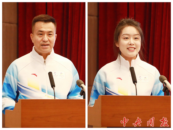 二是要展现青春朝气,传递正能量。志愿者工作在一线、奉献在一线,是奥林匹克精神的传播者、志愿服务理念的践行者、中国故事的讲述者。希望大家加强临时党支部、团支部建设,充分发挥党、团组织战斗堡垒作用,充分发挥党员、团员先锋模范作用,将承担志愿工作和担当时代使命结合起来,在奥林匹克的舞台上践行“请党放心,强国有我”的青春誓言,讲好“踔厉奋发,笃行不怠”的中国故事,唱响“一起向未来”冬奥主旋律。