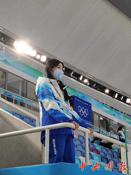 李婉:近距离感受中国运动员的速度,亲眼见证属于中国的荣耀,何其有幸生于华夏。虽然只是一名小小的志愿者,但我将以我最大的努力投入工作中,为冬奥的成功举办贡献自己的力量!
