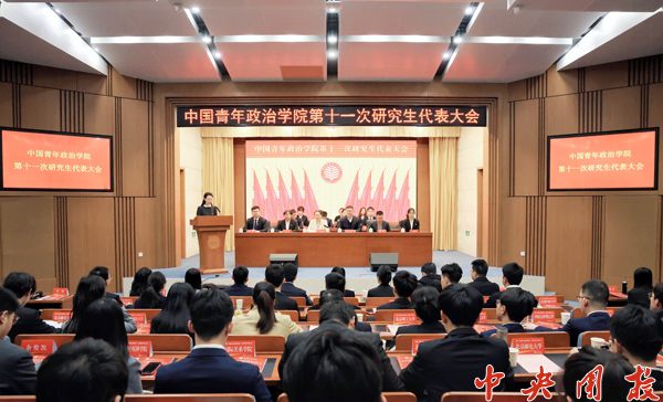 会议听取了钱昱昆同学代表第十届研究生会所作的题为《青春为中国式现代化挺膺担当 团结带领中青学子为建设党在青年工作领域特色鲜明的政治学校贡献青春力量》的工作报告,审议并通过了《中国青年政治学院第十一次研究生代表大会关于中国青年政治学院第十届研究生会工作报告的决议》等文件。9名同学当选为学校第十一届研究生会委员会委员,林明申、欧阳裕铃、莫冰玥等3名同学当选学校研究生会主席团成员。