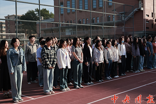 在庄严的国旗下,5名青年教师和研究生代表依次作“国旗下的演讲”。教务部青年教师张泽芳以《弘扬爱国主义精神 践行青春使命担当》为题,结合个人成长与工作经历,深情阐释了对爱国主义的理解,并呼吁青年学子将“小我”融入“大我”,在工作岗位上践行初心使命,为党的青年工作事业贡献智慧与力量。青少年工作系研究生莫冰玥,中共党史与青运史系研究生邢恩慧,社会工作系研究生韩佳正,青少年工作系研究生刘星雨分别以《守抗战精神初心 显青年担当本色》《传承抗战精神 谱写青春担当》《青年挺膺担当 奏响时代强音》《奋进新时代 青年勇担当》为题进行了演讲,表达了新时代青年赓续红色血脉、勇担时代使命的坚定信念。