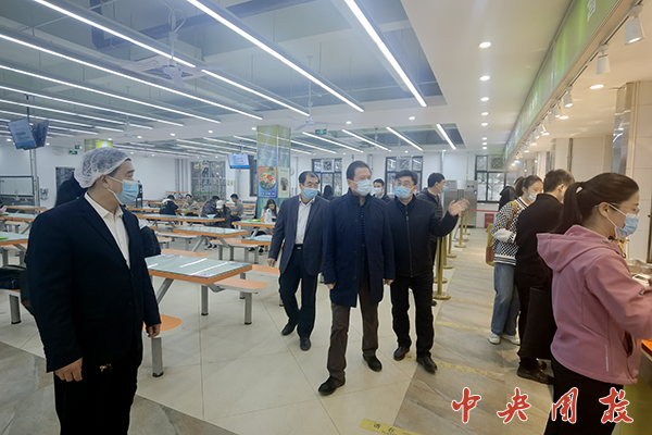 黄侃一行检查了校门口值班值守岗,了解了近期校园人员、车辆进出管控情况,强调要把好校门管理关,守牢校园疫情防控第一道防线;深入乐群楼一层学一餐厅,查看了入口测温、就餐排队、佩戴口罩等情况,询问了校内人员就餐安排、学生基本伙供应保障情况;走进大阶梯教室,随机检查了学员室内佩戴口罩情况;深入家属区居委会,慰问了社区工作人员,询问了家属区房屋出租和流动人口管理情况,强调要坚持校园疫情防控一盘棋,按照“校园疫情防控要比社会面更严一些”的要求,严格落实“四方责任”,加强工作沟通、协同作战,向社区居民做好政策宣传解释工作,提醒社区居民自觉履行个人防疫责任,积极配合、支持学校做好校园疫情防控工作。