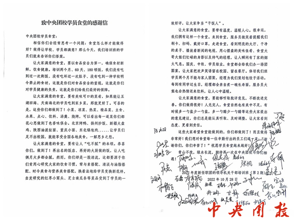 新闻中心讯 “让人满意的食堂要以食品安全为首位,要有美味可口的菜肴,要有让人 ‘吃不腻’的本领,要有带有温度的服务,要能够听取批评意见……这些你们都做到了!” 2022年度新任职团的领导机关干部培训班(第2期)在送给学员餐厅的一封感谢信中这样写道。这是自今年3月实施保障任务以来,学员餐厅收到的第2封感谢信,此外,还收到了两面锦旗 。感谢信和锦旗的背后,是餐厅苦练内功,不断提升食品质量和服务水平的努力。