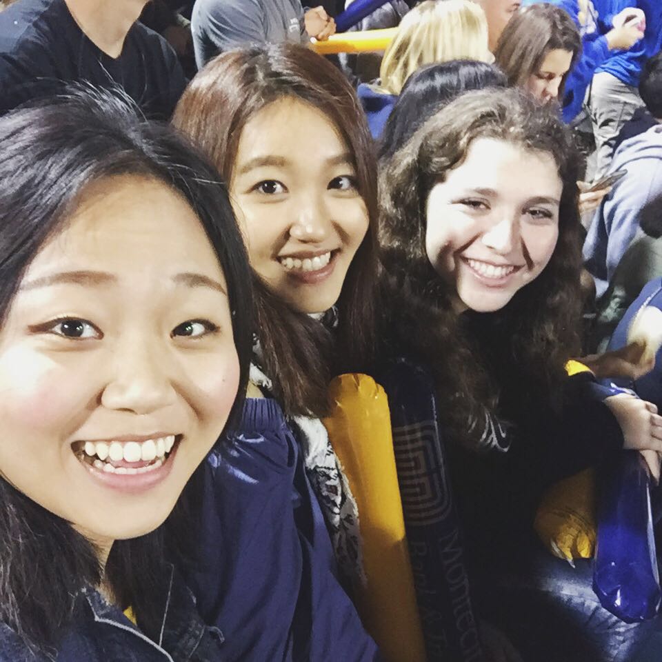 左边的是来自台湾的女孩佩华,她说因为来美国大家不会发Hua的音,便让大家都称呼她Pei。政治问题不影响我们的友谊,除了小组的任务外,我们总是一起约在图书馆上自习,周末还一块儿去Downtown的中国餐厅吃饭,去逛街买衣服,也会和我分享她追男神的各种小情绪。右边是有俄罗斯血统的美国女孩儿Jackie。热情的她不停地鼓励与帮助在组里不是很敢表达的我,是名副其实的Leader,平时还身兼数职,成绩更是优秀到GPA4.0。课堂任务之外,我们经常一块去喝生活区里的一家Boba Milk Tea,也就是珍珠奶茶。她非常热爱Boba Milk Tea,更是亚洲男团的超级粉丝,在邀请我去她家时,大方地向我展示了她卧室一墙的海报。对他们的行程也是了如指掌,甚至可以随口说起韩文。时至今日我依然和她们保持着联系,分享着有趣的见闻。她们的存在让我更加珍惜这一次的旅程。