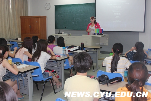 美国微电影工作坊导师Erin Zerbe正在给学生上课