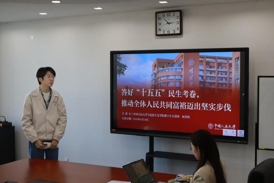 中国人民大学马克思主义学院博士宣讲团讲师何君炜以《答好“十五五”民生答卷,推动全体人民共同富裕迈出坚实步伐》为题,从总书记广东调研之行切入,剖析城乡区域发展不平衡现状,深入解读广东“百千万工程”实践经验,并立足“十五五”规划探讨新时代推动共同富裕的未来实践路径。