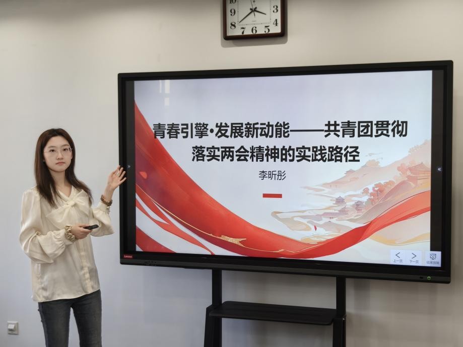 我院“青马新声”理论宣讲团团长李昕彤带来《青春引擎・发展新动能——共青团贯彻落实两会精神的实践路径》宣讲,聚焦共青团两会提案,解读“十五五”时期青年贯彻落实两会精神的实践方向,阐释青春经济内涵,并分享中长期青年发展规划、北仑青年驿站等实践案例。
