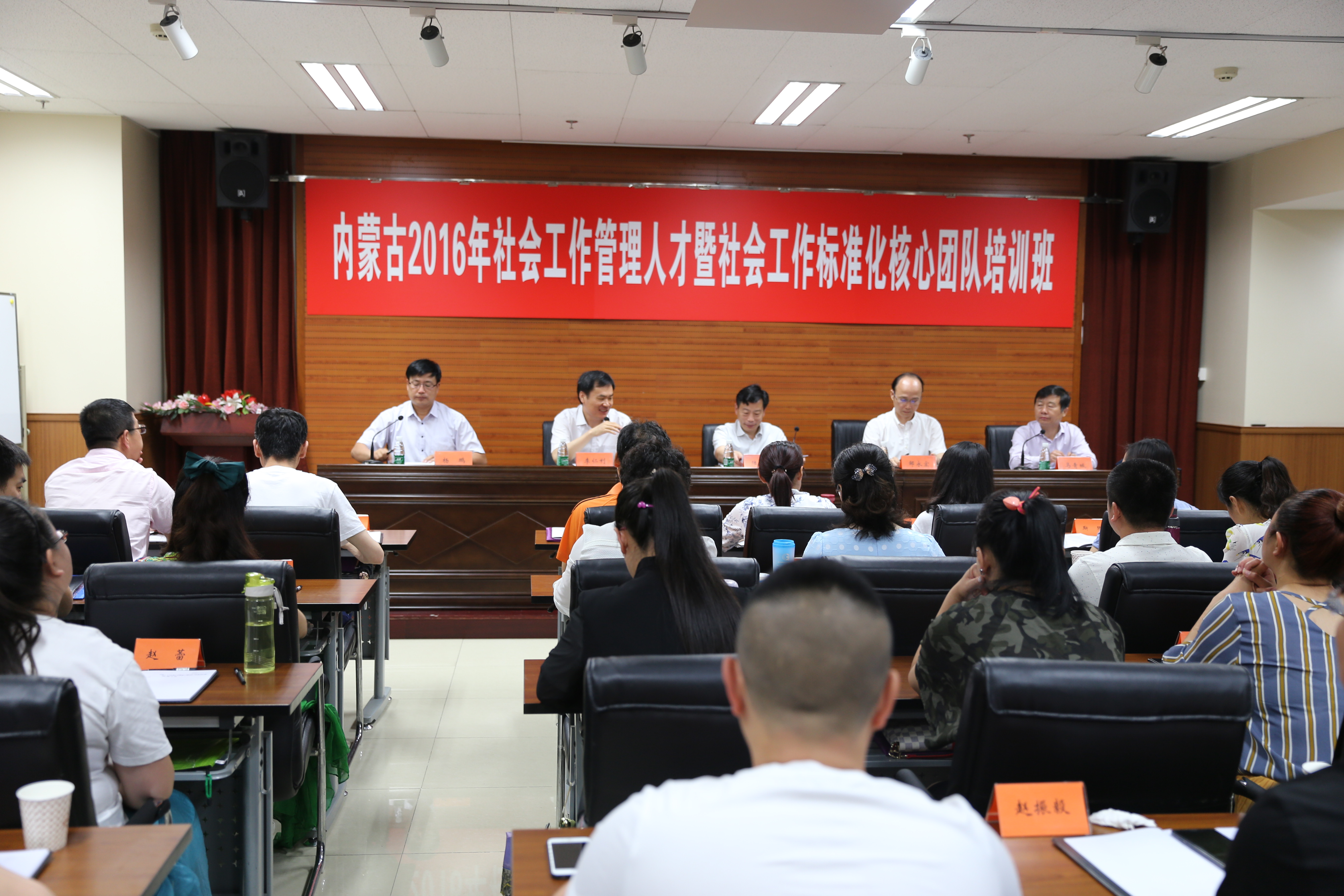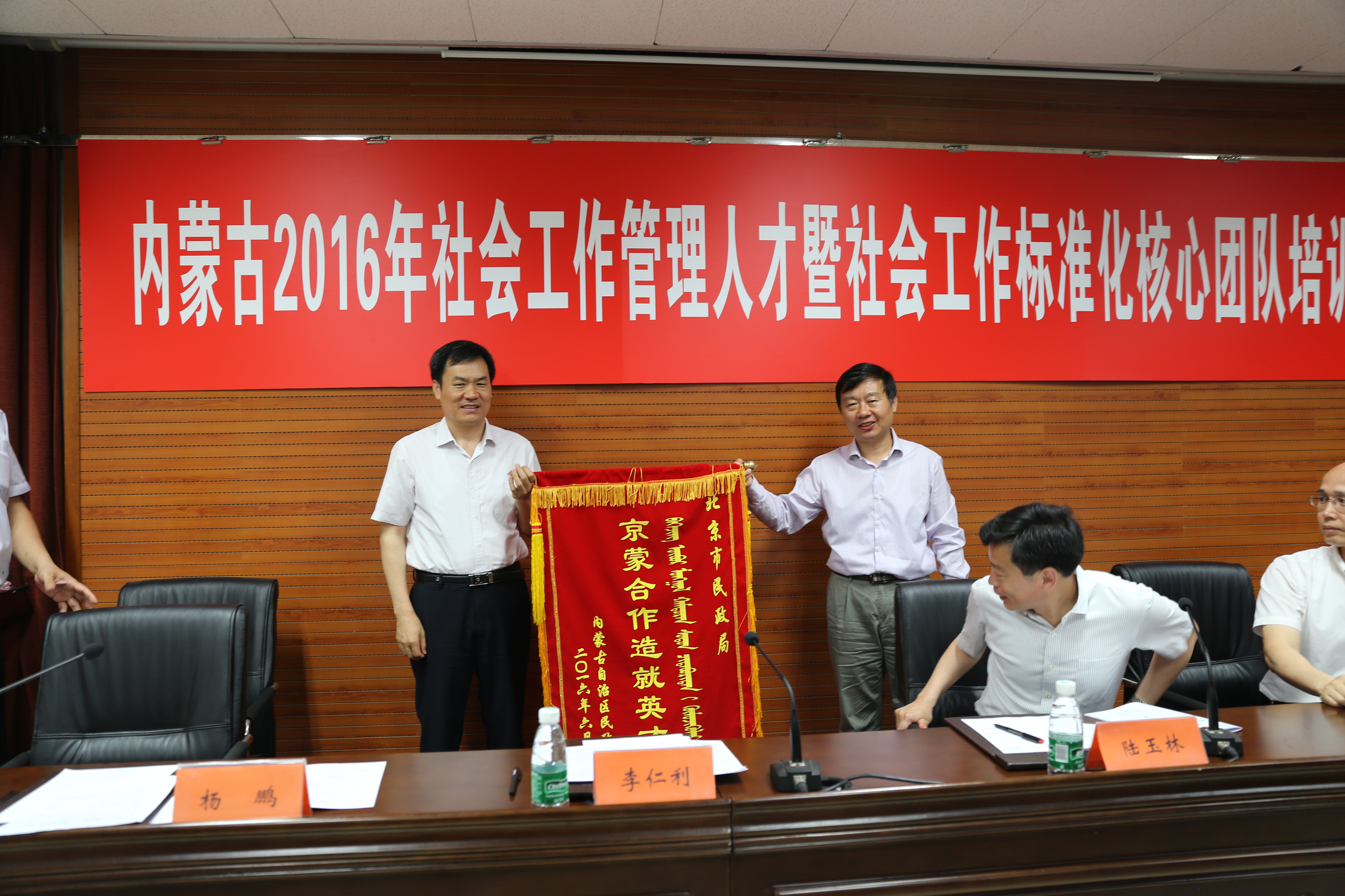 本期培训班是2016年京蒙区域人才合作项目,培训的主题是贯彻落实全国社区社会工作人才建设暨社会工作标准化建设的指导精神,加快内蒙古自治区社会工作人才建设及社会工作标准化推进步伐,为创新基层社会治理、完善社区服务体系、巩固党执政基础提供有力支撑。世界杯官网党委常委、副校长陆玉林,北京市民政局社会工作处处长李仁利,内蒙古自治区民政厅社会工作处处长马青城出席开班仪式并讲话,民政部人事司科技与标准化处处长邹永宏出席开班仪式并为培训班做题为《民政标准化现状与政策》的首场讲座,开班仪式由继续教育学院院长杨鹏主持。在开班仪式上,内蒙民政厅向北京市民政局和中国青年政治学院分别赠送了锦旗。