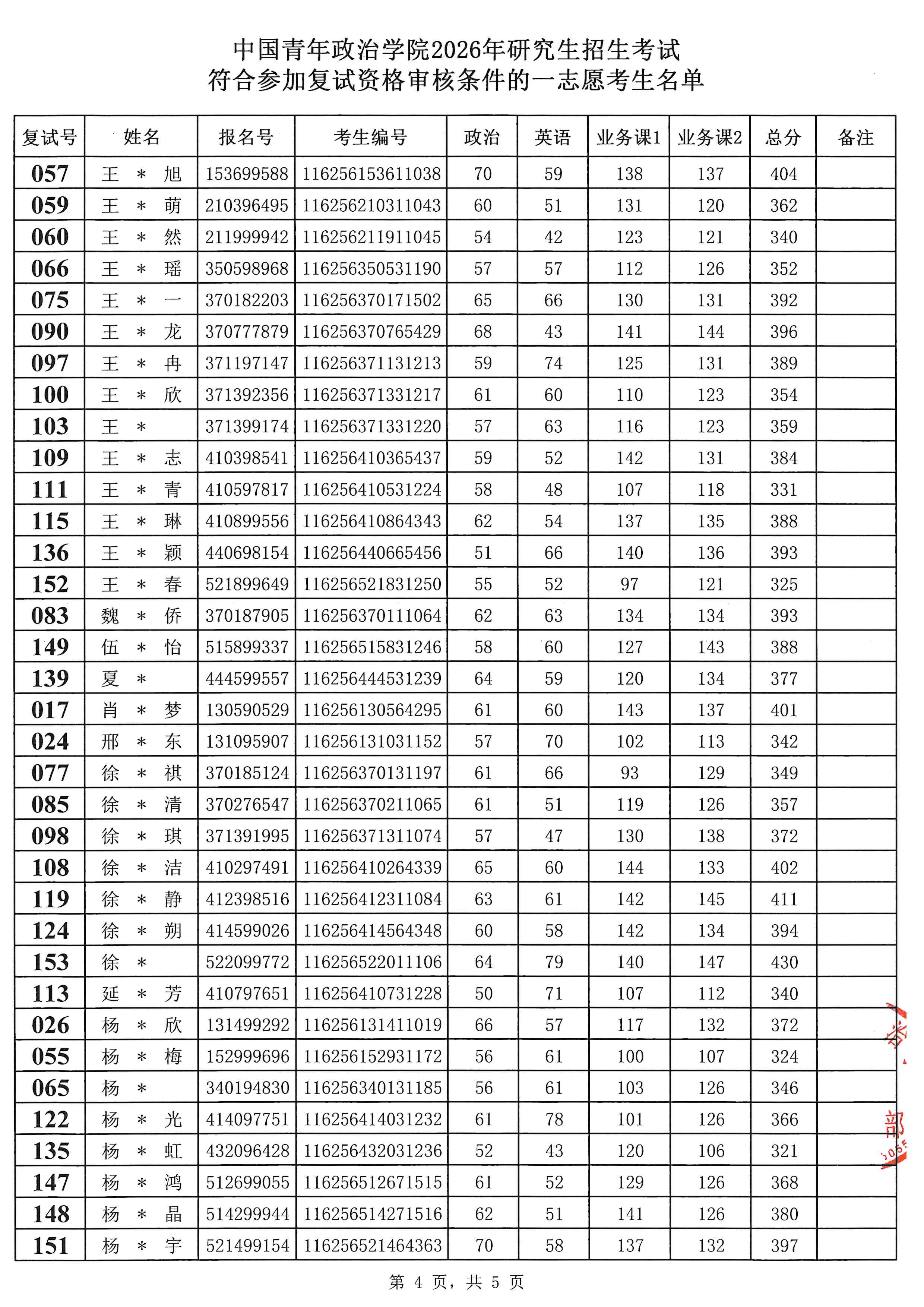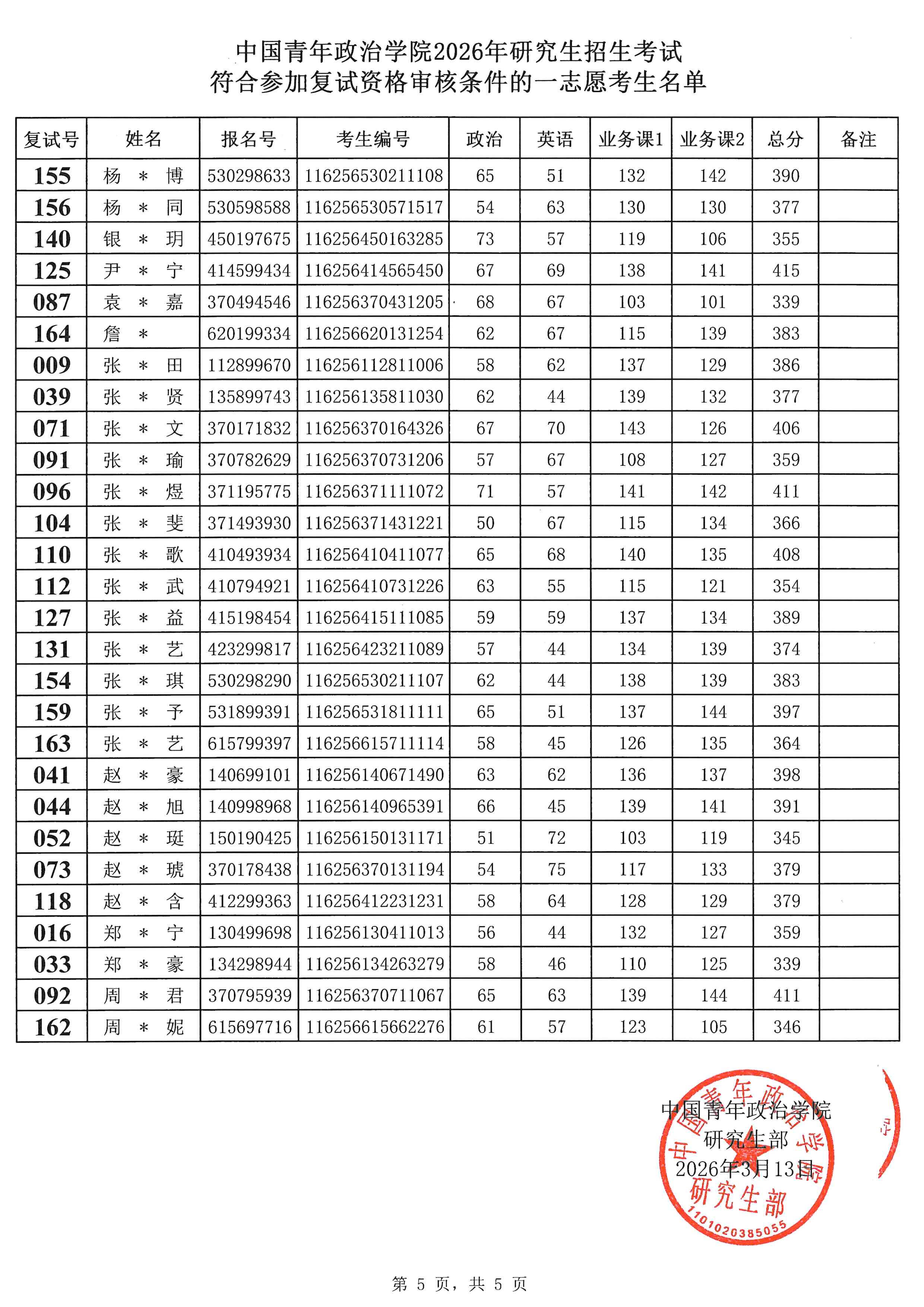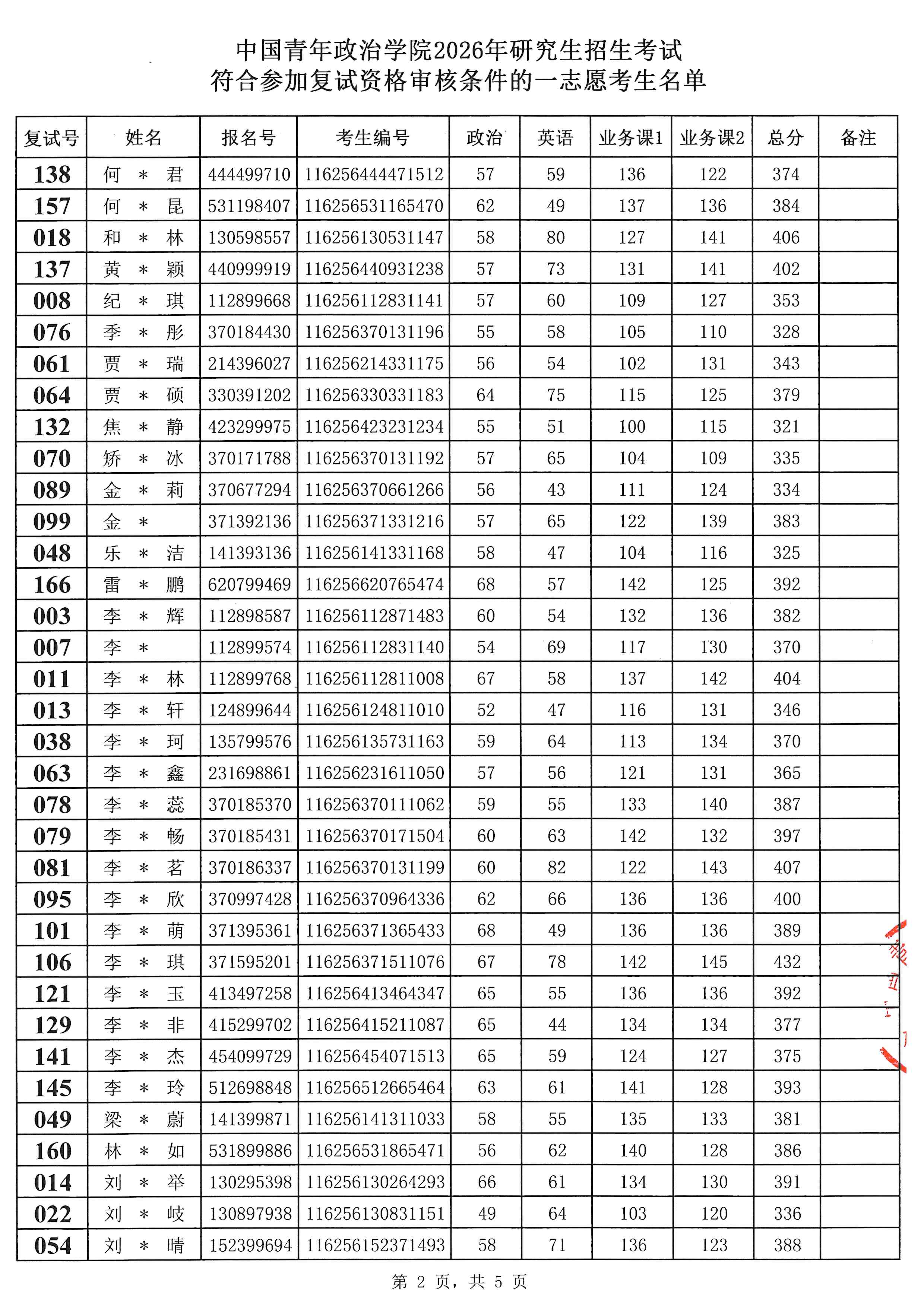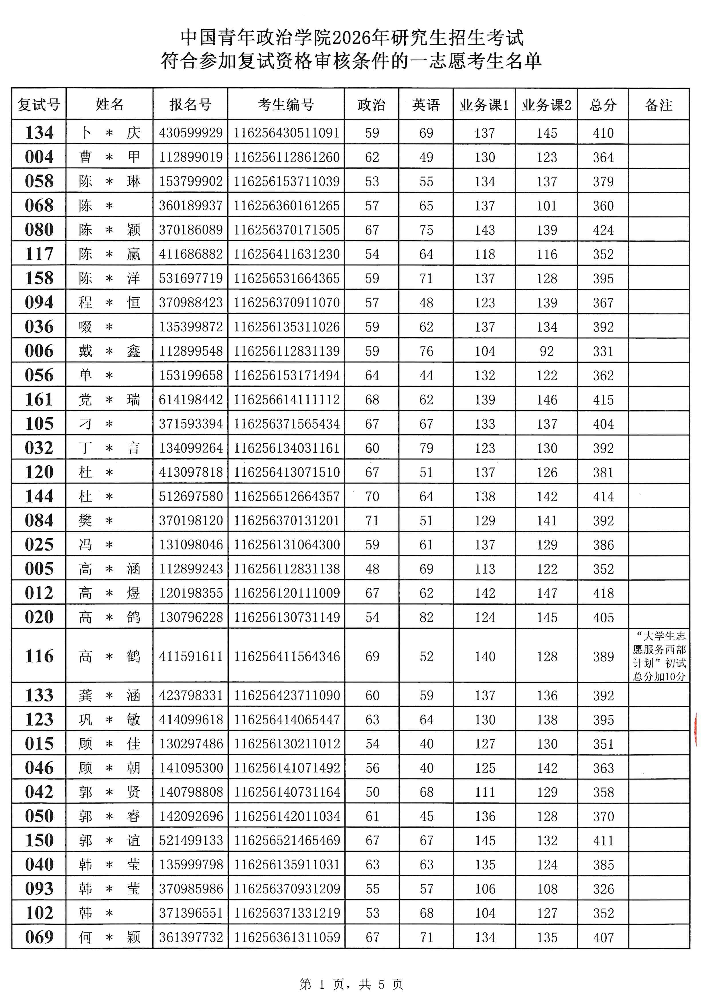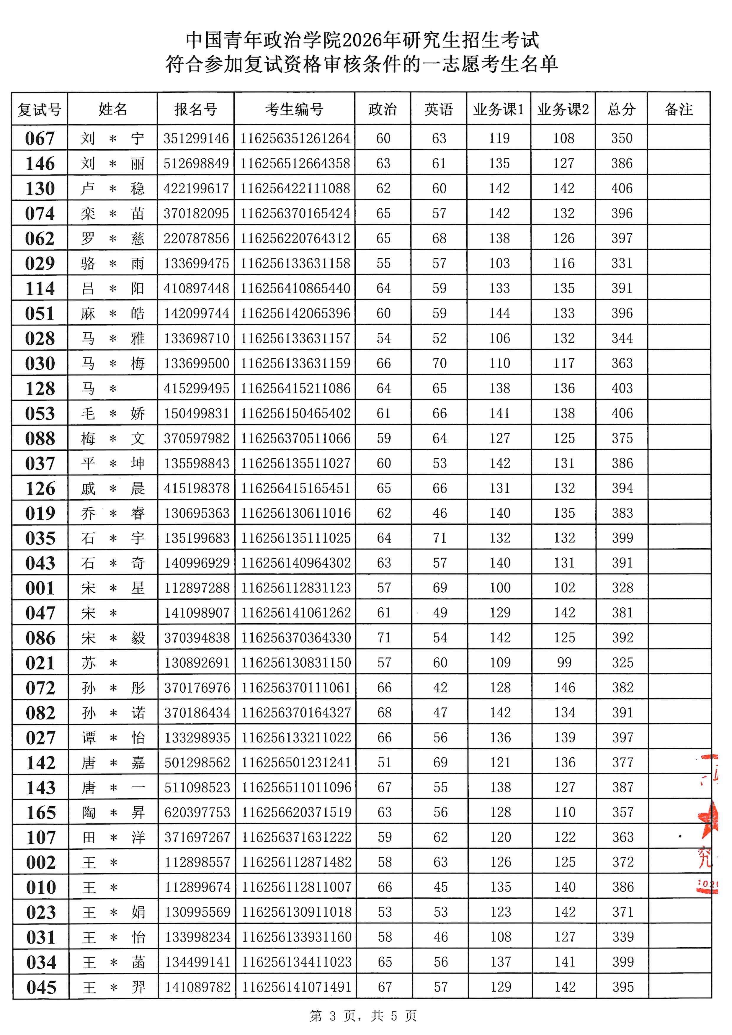符合参加复试资格审核的考生名单详见附件。请考生牢记本人复试号,复试号通过附件中名单获取!